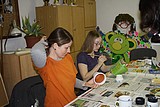 V březnu vyzkoušely také novou techniku, tentokrát to byla tzv. „DECOUPAGE“ / ubrousková technika /. Při této činnosti se používají papírové ubrousky na zdobení např. krabiček, květináčků, lahviček apod.